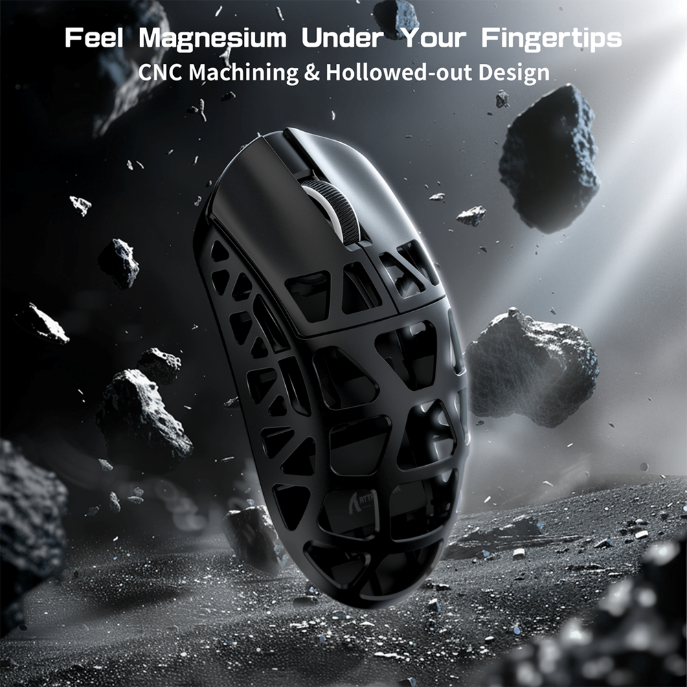 Magnesium is the lightest metal material for structure. The R3 adopts this premium metal while crafted with a CNC-integrated metallic frame for perfect visual appeal and great comfort. And don’t overlook the hollowed-out design, not only lending the mouse a unique aesthetic but also guaranteeing optimal airflow, ensuring your grip stays cool even during the most intense gaming sessions.