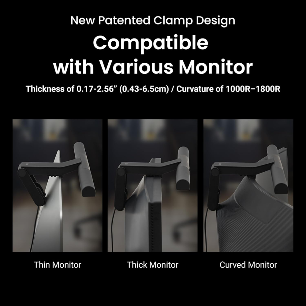 - High Compatibility: Fits monitors 0.43-6.5cm thick and curvature 1000-1800R. Patented clamp design accommodates monitors with special back designs or non-flat top bezel. Easy setup and no blocking to camera lens.