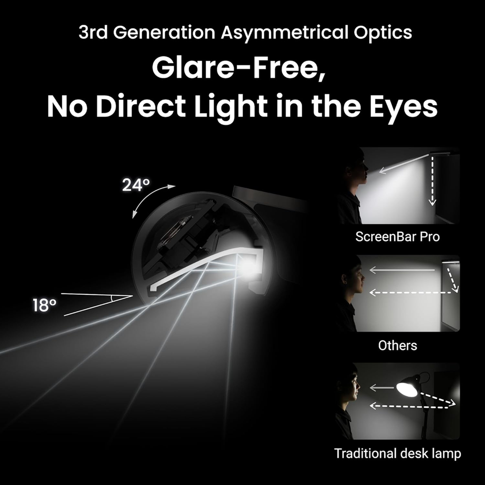 - Bright and Ultrawide Illumination: ScreenBar Pro offers over 1000lx central brightness and a 500lx range within 85*50cm, outperforming most desk lamps and enhancing eye comfort with ample illumination.