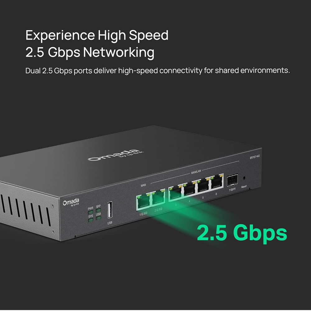 Delivering high-speed transmissions through dual 2.5 Gbps ports, ER707-M2 is designed for multi-person environments such as retail stores, hotels, and offices. Enjoy a blazing-fast network experience while working from home.