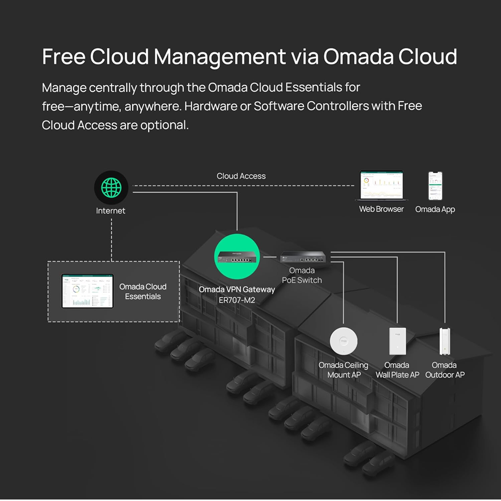 - Centralized cloud management via the web or the Omada app*