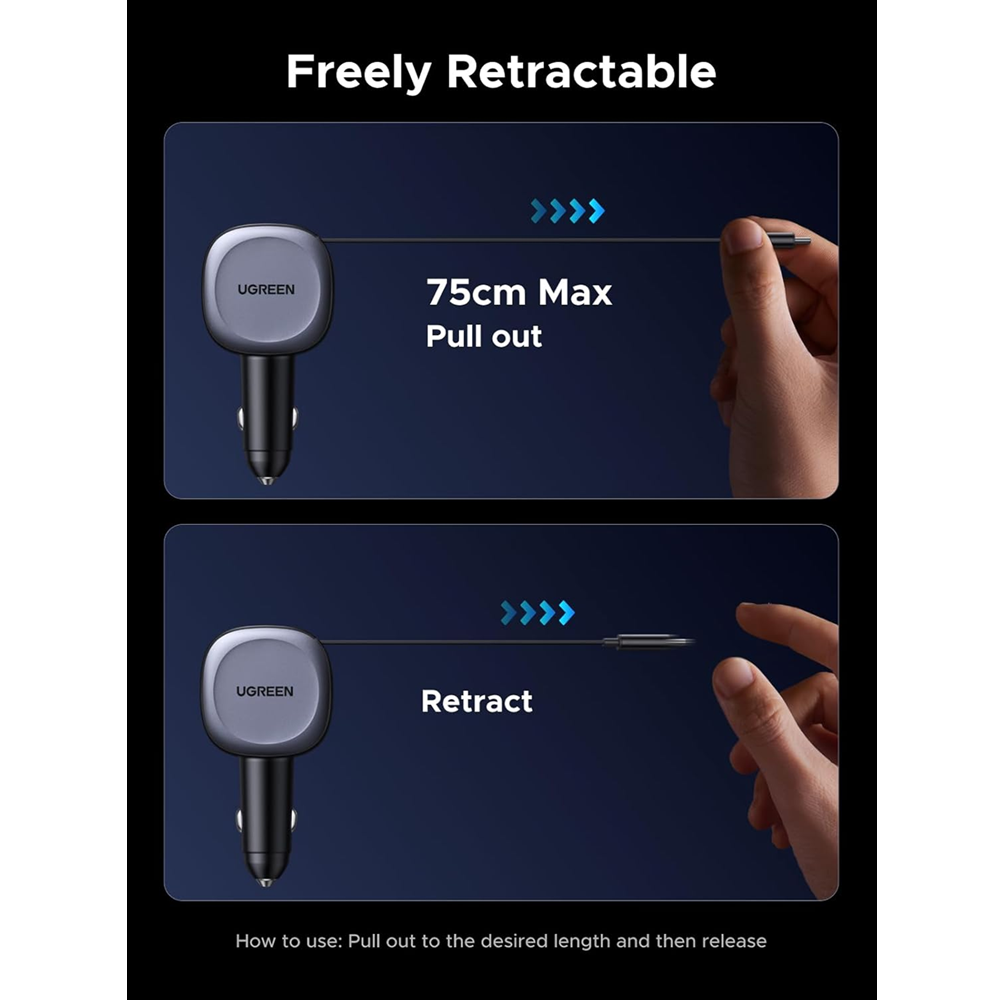 - 2-in-1 Retractable Cable: Features a built-in USB-C and Lightning cable