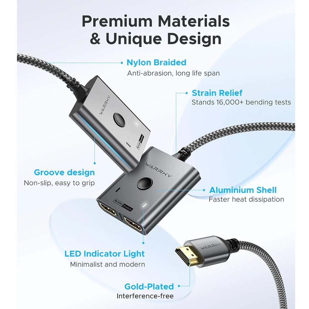- Fixed HDMI 2.0 high-quality cable. The materials and length of HDMI cable would affect picture quality. WARRKY 3.3ft braided cable combines use experience and display performance. Without picture degradation.